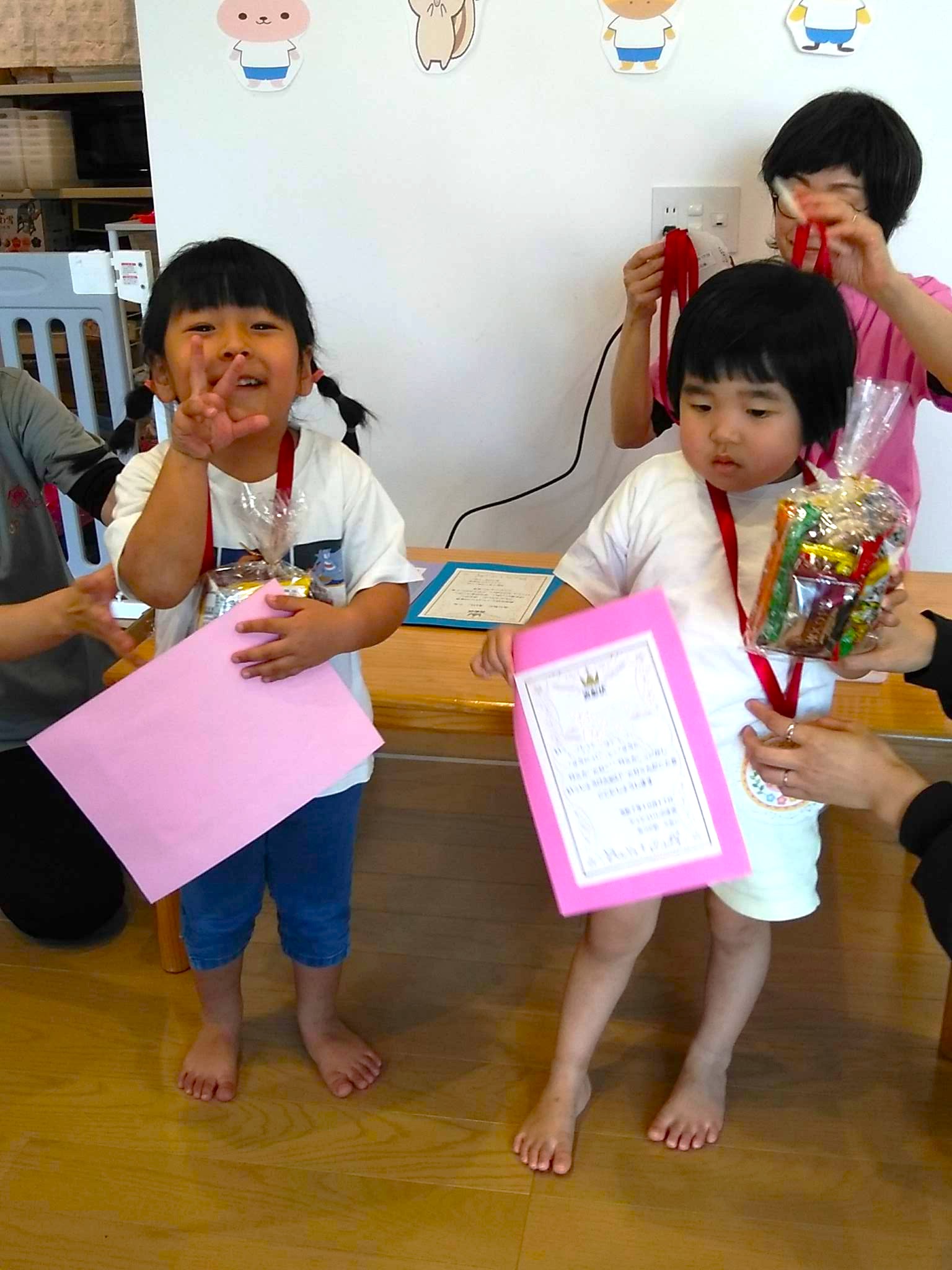かけっこ、玉転がし、リレー、親子競技のでかぱんレース、そしてソーラン節と緊張しつつもとても頑張った子どもたちに職員は嬉しさでいっぱいでした。