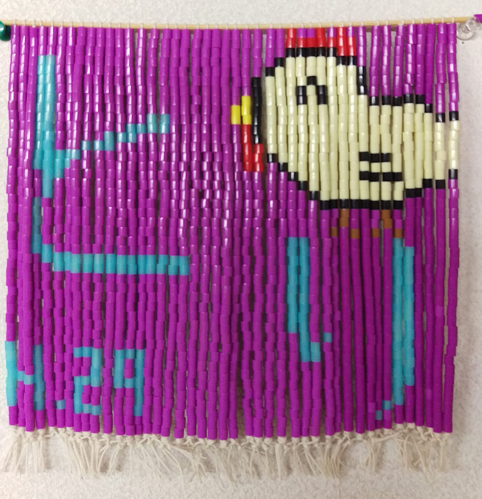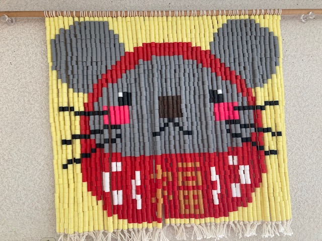 タペストリーは絵に描いた設計図を見ながら先の丸い針に糸を通し、パーラービーズを入れて行き完成を目指します。 基本は一人一枚の設計図を持ち完成を目指します。大きいタペストリー等は複数人で作業を進めていき、完成を目指します。