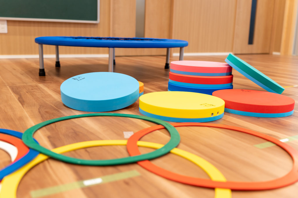 粗大運動と呼ばれ、「走る」「跳ぶ」等、全身を大きく動かす運動を指します。子ども達に元気に躍動してもらいたいとする思いを込めて「ダイナミック」と呼んでいます。