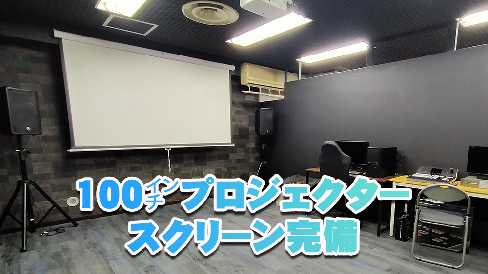 100インチプロジェクターを完備しており、大画面でゲームを楽しんだり、自分が制作した動画を流したりできます。