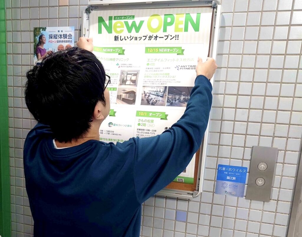 ポスター掲示や館内アナウンス、商業施設で行われる各種イベントの設営や運営など、事業所の立地条件を活かすことで携われる幅広い業務の経験が、就労に向けた利用者のスキルアップだけでなく、新たな可能性の芽を見つけ育む機会へと繋げます。