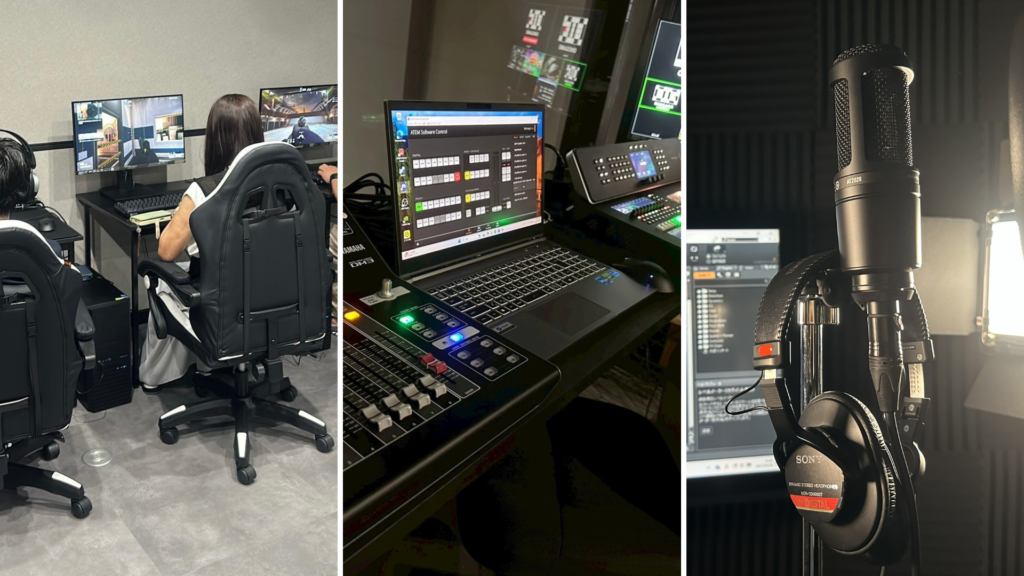 eスポーツタイトルを含めゲームの知識を身に付け、技術向上やチーム連携など日々トレーニングを行う「選手コース」、イベント設営に必要な機材に触れながら、月に一度開催される事業所内イベントの企画、スライドや台本作成など、イベント運営に関するトレーニングを行う「イベント・裏方コース」、 発声の基礎練習から実況解説、MC、歌や楽器、デジタルイラストなどで活躍するための幅広いトレーニングを行う「MC・イラスト・音楽コース」の3つからコースを選べます。