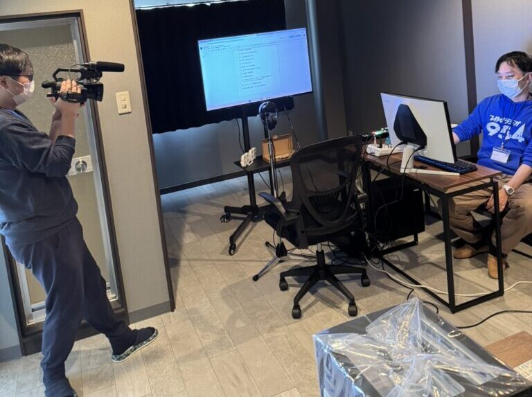 (左から選手コース コーチやすださん、イベントコースコーチいながきさん、管理者兼サビ管りゅういち、実況解説MCコースたかはしさん)