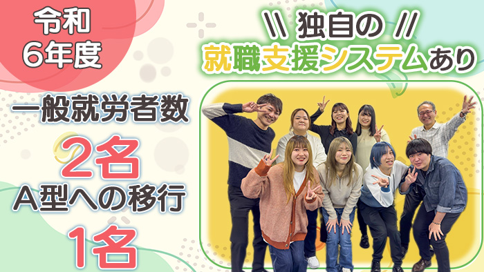 (Mapで見る)「入りたい会社より、入って良かったと思う会社に就職してもらいたい」 という考えのもと、利用者様が就職活動する際は、会社分析を専門のキャリアコンサルトと一緒に行います。 色々な角度から会社を見て、継続して無理なく楽しい職場を一緒に探しましょう。 就職活動はもちろん、入社後の定着サポートも全力で応援いたします。 -